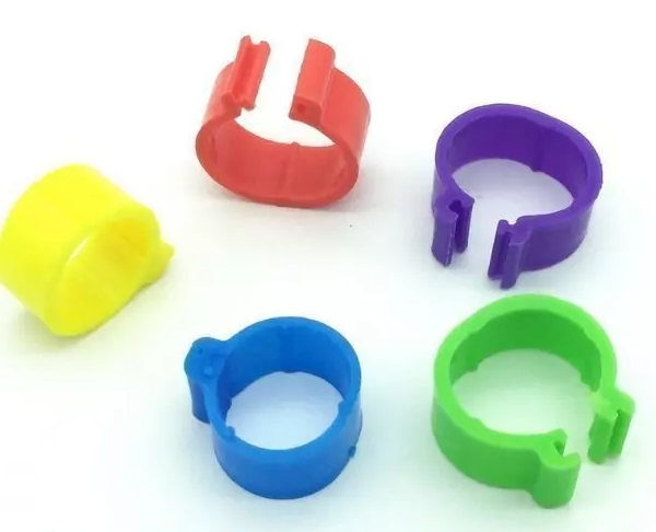 Wiele kolorów pierścieni udek kury w celu odróżnienia rasy lub wieku drobiu . Pierścień idealnie pasuje do pazura.