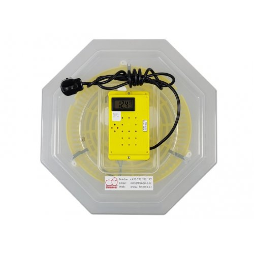 Panel sterowania znajduje się na zwężonej płaszczyźnie, co pozwala lepiej widzieć wyświetlacz i dokonywać regulacji podczas operacji wylęgarni. Wylęgarnia jest również wyposażona w wysokiej jakości grzejnik i bezszczotkowy wentylator dla jego dłuższej żywotności, niższego zużycia energii i niskiej masy.