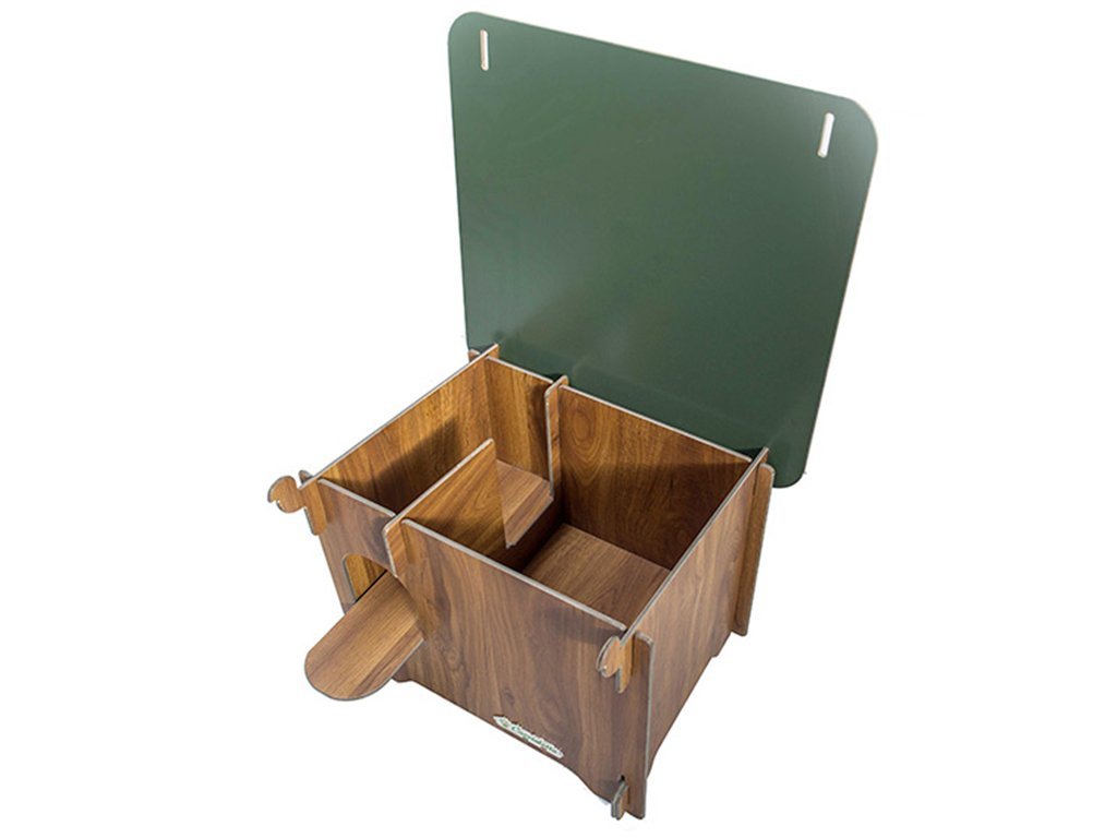 Kurnik jest lekko wywyższony na drewnianych nogach i można go umieścić w dowolnym miejscu na podwórku. Drób ma dostęp w obie strony przez małą rampę, dzięki czemu może wybierać między przebywaniem na zewnątrz lub ukrywaniem się w środku. Oczywiście kurnik jako całość można zamknąć. Otwór u góry zapewnia wystarczający dopływ świeżego powietrza.