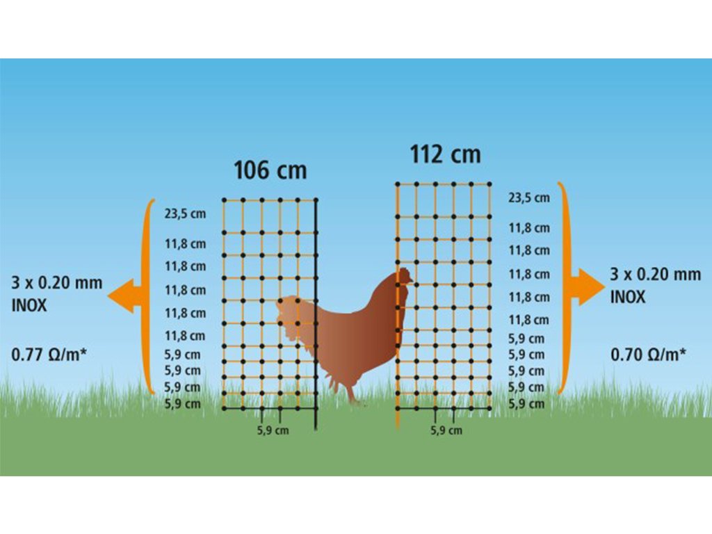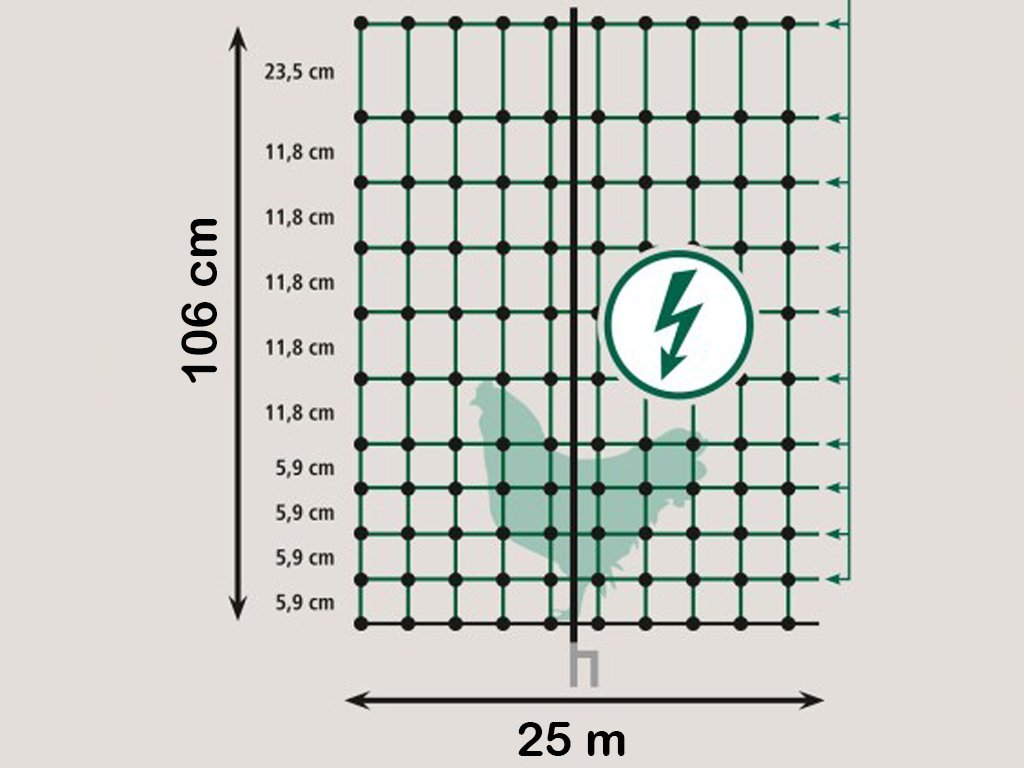 Síť pro drůbež 106 cm x 25 m - vodivá, dvojitý hrot