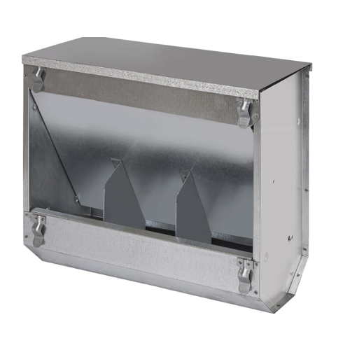 Plastikowy podajnik dla drobiu, o pojemności jednego kilogramu żywności. Podajnik łatwo rozkłada się na dwie części, dlatego lepiej się czyści i dezynfekuje. Pełny opis