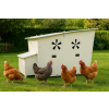 Kurnik jest lekko wywyższony na drewnianych nogach i można go umieścić w dowolnym miejscu na podwórku. Drób ma dostęp w obie strony przez małą rampę, dzięki czemu może wybierać między przebywaniem na zewnątrz lub ukrywaniem się w środku. Oczywiście kurnik jako całość można zamknąć. Otwór u góry zapewnia wystarczający dopływ świeżego powietrza.