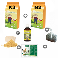 Pakiet żywieniowy, z którego korzysta każdy prawidłowy hodowca kur, a tym samym zapewnia swoim dziewczynom wszystkie niezbędne witaminy i minerały. Opakowanie zawiera: 1 x mieszanka K3 10 kg, 1 x mieszanka N2 18 kg, 1 x drożdże piwne 1080 ml, 1 x ziarno wapna 3 kg, 1 x czarny słonecznik 2 kg i 1 Pełny opis