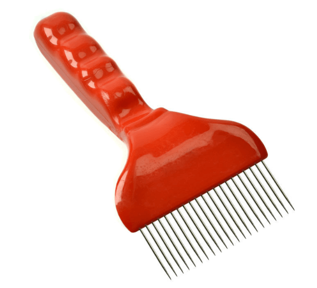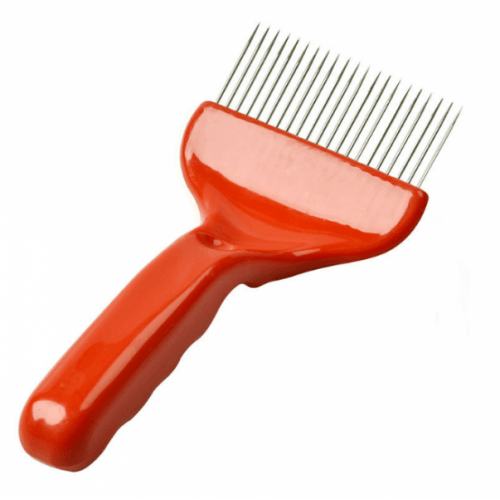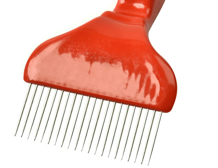 Odsklepiacz widelcowy z 18 nierdzewnymi igłami i plasikowym wygodnym uchwytem. Odsklepiacz widelcowy to jedno z najpopularniejszych narzędzi, przeznaczonych do ścinania i zrywania zasklepów na plastrach z miodem Dzięki prostym igłom ze stali nierdzewnej osiągniesz szybkie i wysokiej jakości odszyfrowanie wszystkich zamkniętych ramek z wosku pszczelego. Wystarczająco szeroka głowica wideł, igły ze stali nierdzewnej i plastikowy, ręcznie dopasowany uchwyt zapewnią wysokiej jakości odwijanie ramek pszczół przed włożeniem ich do plastra miodu.